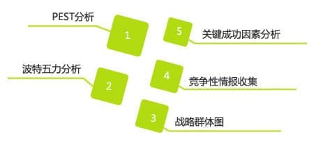 群诺通过行业企业专家深度访谈及内部咨询师头脑风暴,从企业战略、组织结构、产品规划、背景资源及销售模式等方面归纳梳理出行业竞争成功的关键因素,便企业管理者精力和资源集中于那些对企业获取长期竞争成功真正至关重要的因素方面。